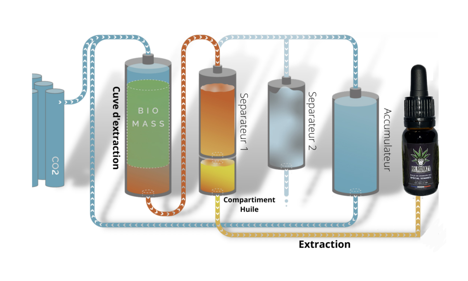 HH.Monkey vous propose une gamme d’huiles de CBD, CBG et CBN extraites à partir de fleurs cultivées organiquement dans le Beaujolais. Nous associons à ces extractions subcritiques, une huile de graines de chanvre bio décortiquées (moins âpres) et française, connue pour sa teneur en oméga 3 & 6 afin de profiter des bienfaits du CBD et des cannabinoïdes ainsi que de la richesse du chanvre.